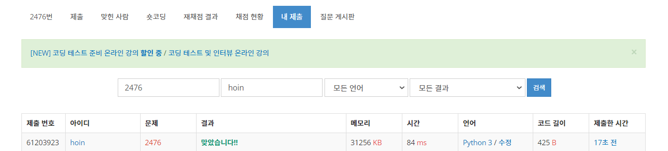 예제가 잘 출력되는지 확인하고 제출한다. 아까같이 틀리질 않길 바란다.