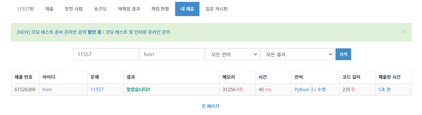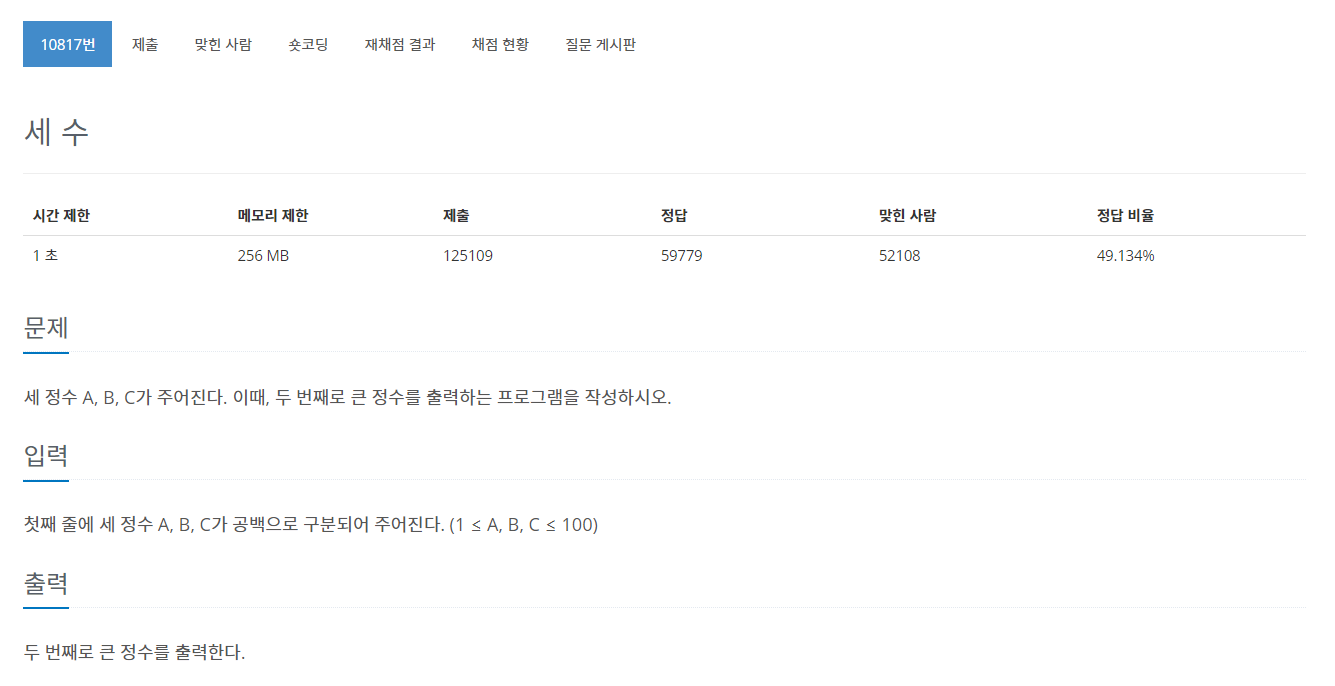 [8주차] 알고리즘 Baekjoon 10817번, 11557번 문제 파이썬 활용 본문