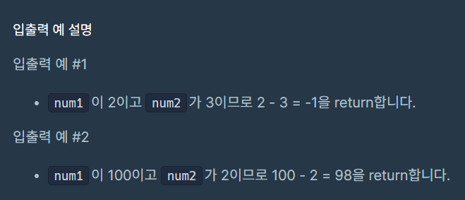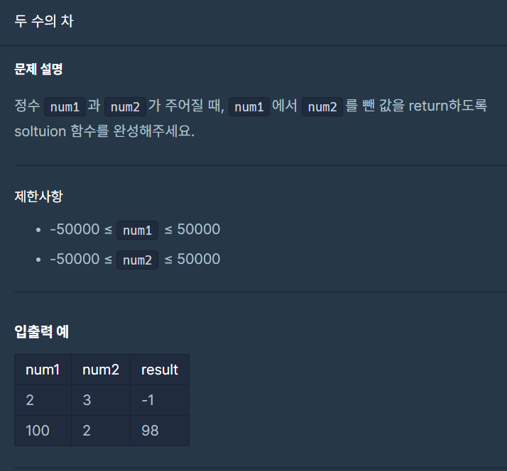 [1주차] 알고리즘 Programmers 문제풀이 문제 3_두 수의 차 본문