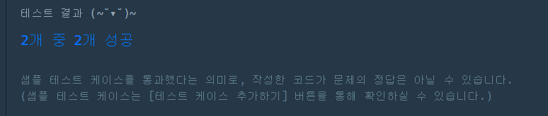 코드 실행 후 정상적으로 작동하는 지 확인하고 제출 후 채점을 진행한다.