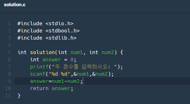 먼저 변수 num1, num2가 주어졌으니 이에 대한 값을 scanf로 입력받아서 저장하도록 코드를 만들어준다.