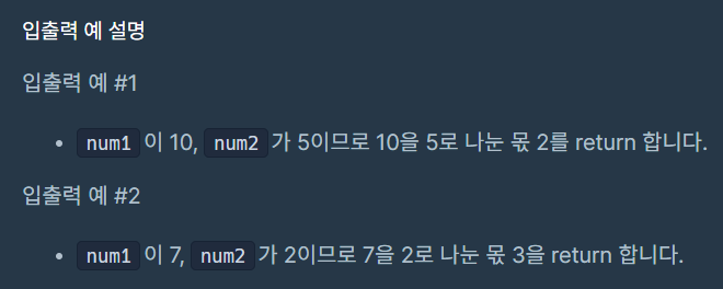 [2주차] 알고리즘 Programmers 문제풀이 문제 2_몫 구하기 본문