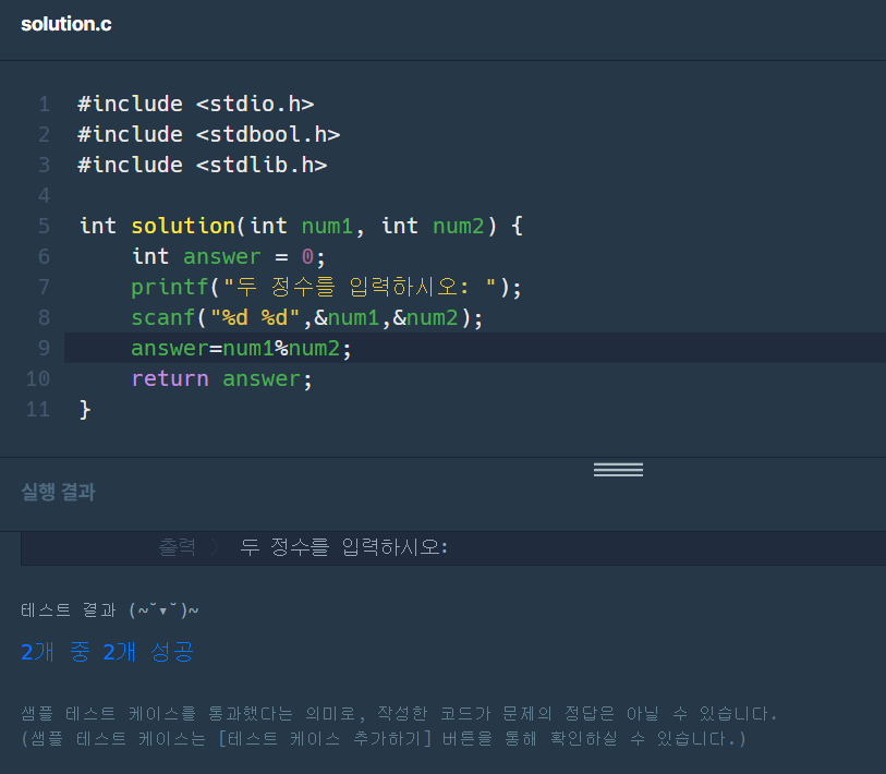 C언어에서 몫을 구하는 연산자는 파이썬과 동일하게 %이다. 이를 활용해서 문제를 풀어나간다.
