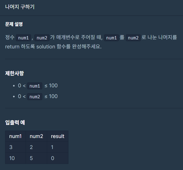 [2주차] 알고리즘 Programmers 문제풀이 문제 3_나머지 구하기 본문