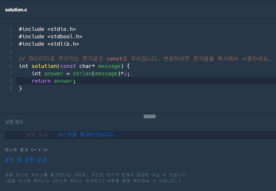 문자열의 길이에 2를 곱해서 answer에 저장해주었다.