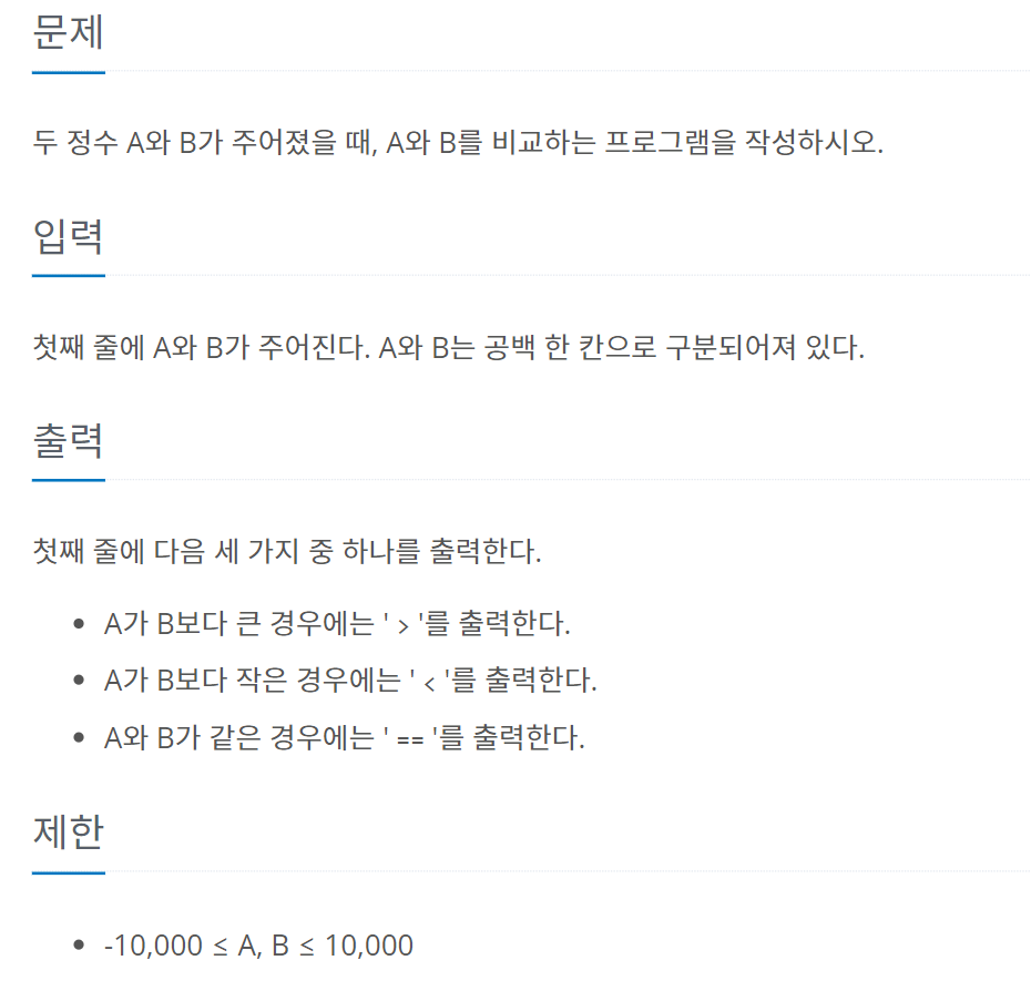 Baekjoon 1330번(두 수 비교하기) 문제풀이를 진행하였다.