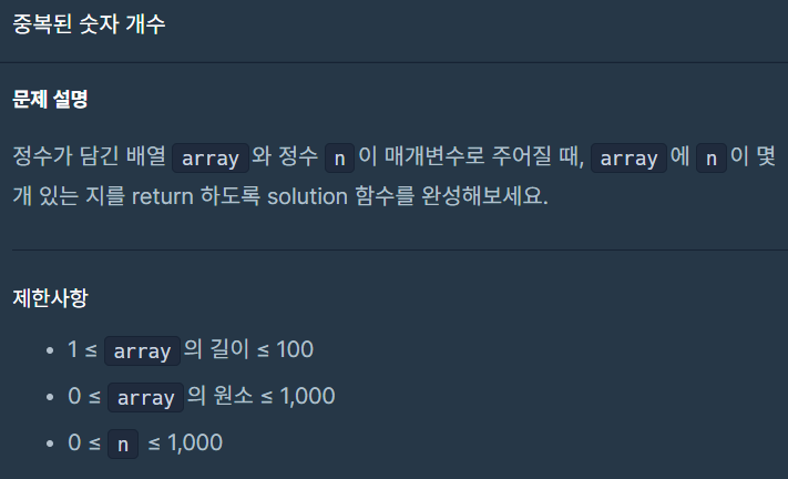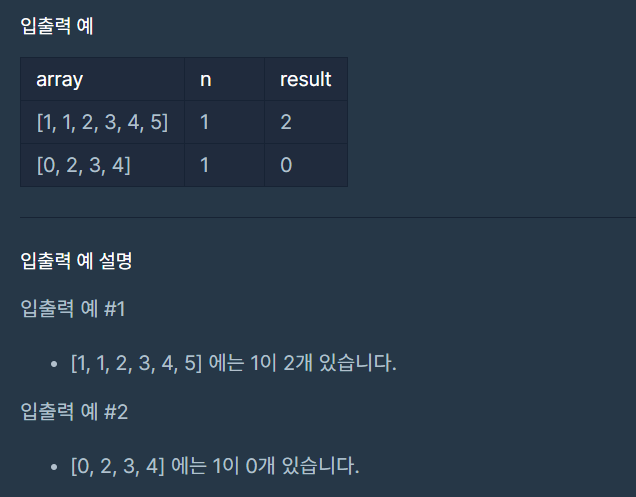 [6주차] 알고리즘 Programmers 문제풀이 문제 2_중복된 숫자 개수 본문
