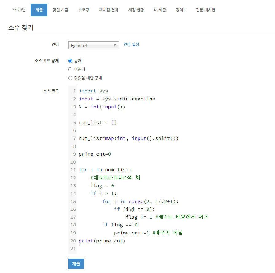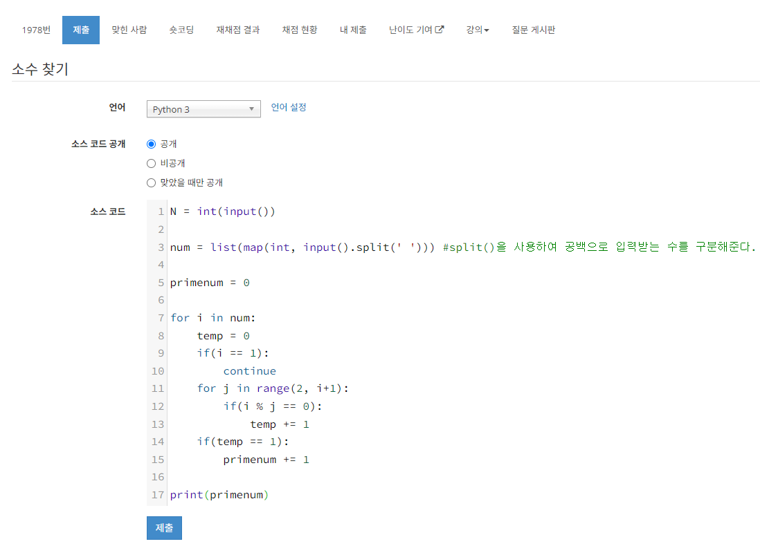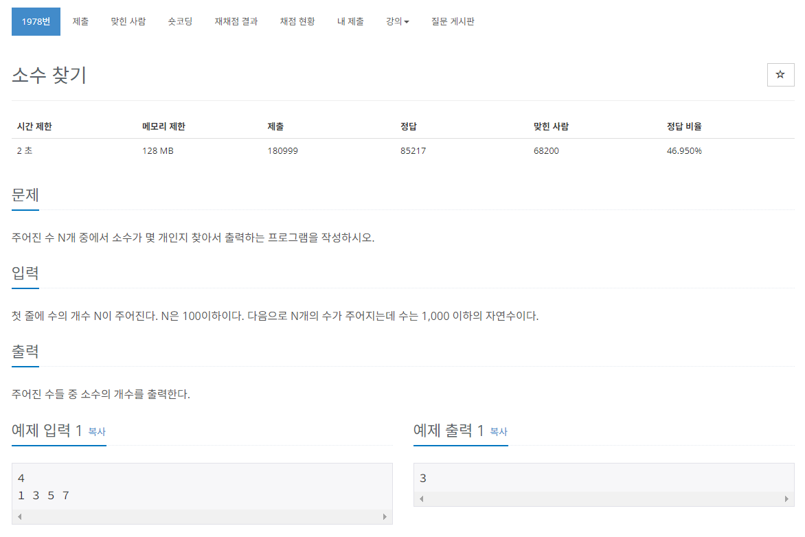 백준 1978번 문제는 이렇게 마무리하겠다.