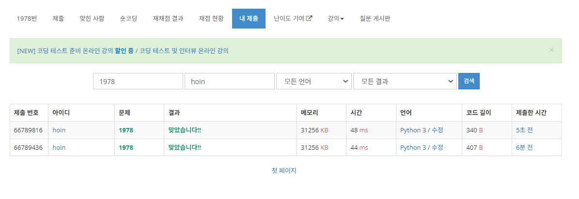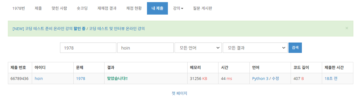 2.[1주차] baekjoon 1978번 파이썬 문제풀이+에라토스테네스의 체 본문