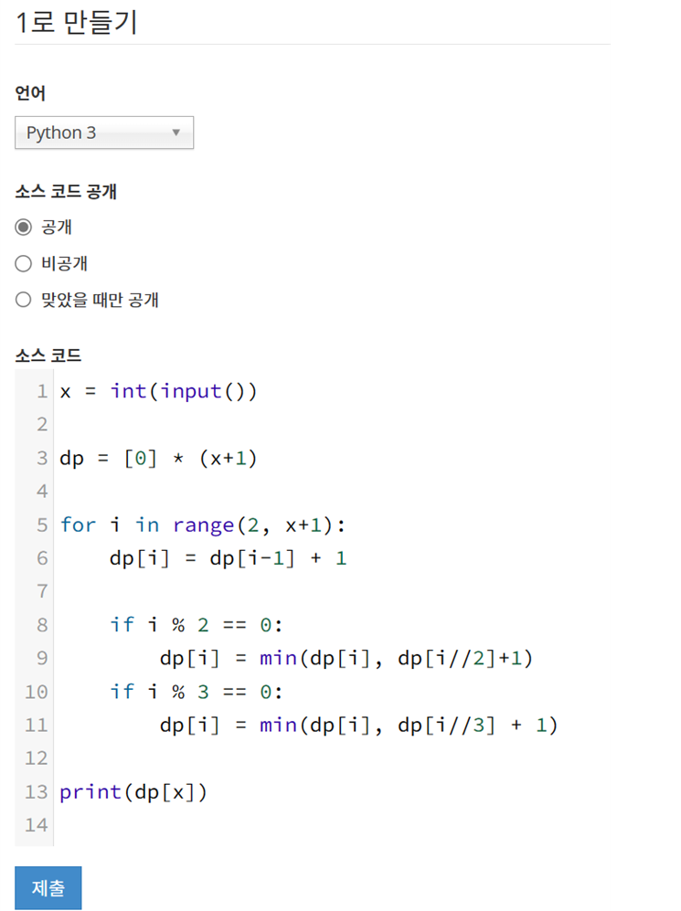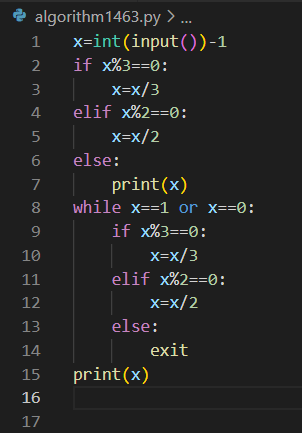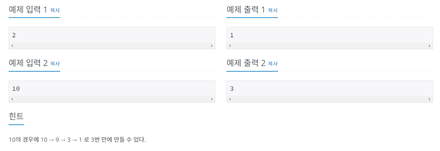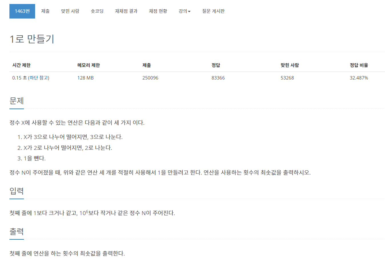 이제 과제2로 넘어가 1463번 문제를 풀어보자.
