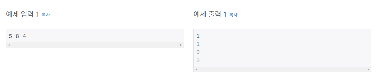 예제에 있는 값 5 8 4 를 입력하여 출력값이 잘 나오는지 확인한다.