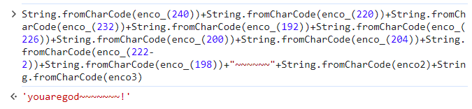 if(ck=="="+String.fromCharCode(enco_(240))+String.fromCharCode(enco_(220))+String.fromCharCode(enco_(232))+String.fromCharCode(enco_(192))+String.fromCharCode(enco_(226))+String.fromCharCode(enco_(200))+String.fromCharCode(enco_(204))+String.fromCharCode(enco_(222-2))+String.fromCharCode(enco_(198))+"~~~~~~"+String.fromCharCode(enco2)+String.fromCharCode(enco3)){