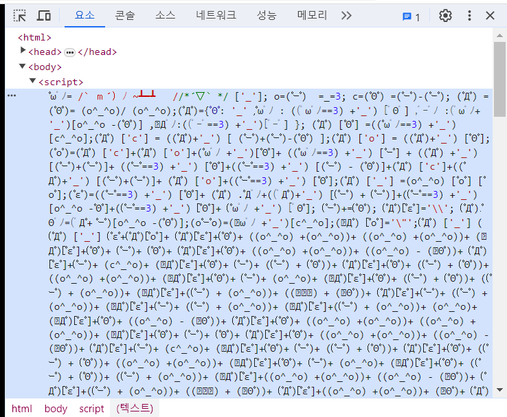 aaencode라고 자바스크립트를 이모티콘으로 바꿔주는 암호화 방식을 사용한 것인데 위 사이트는 복호화를 해준다.