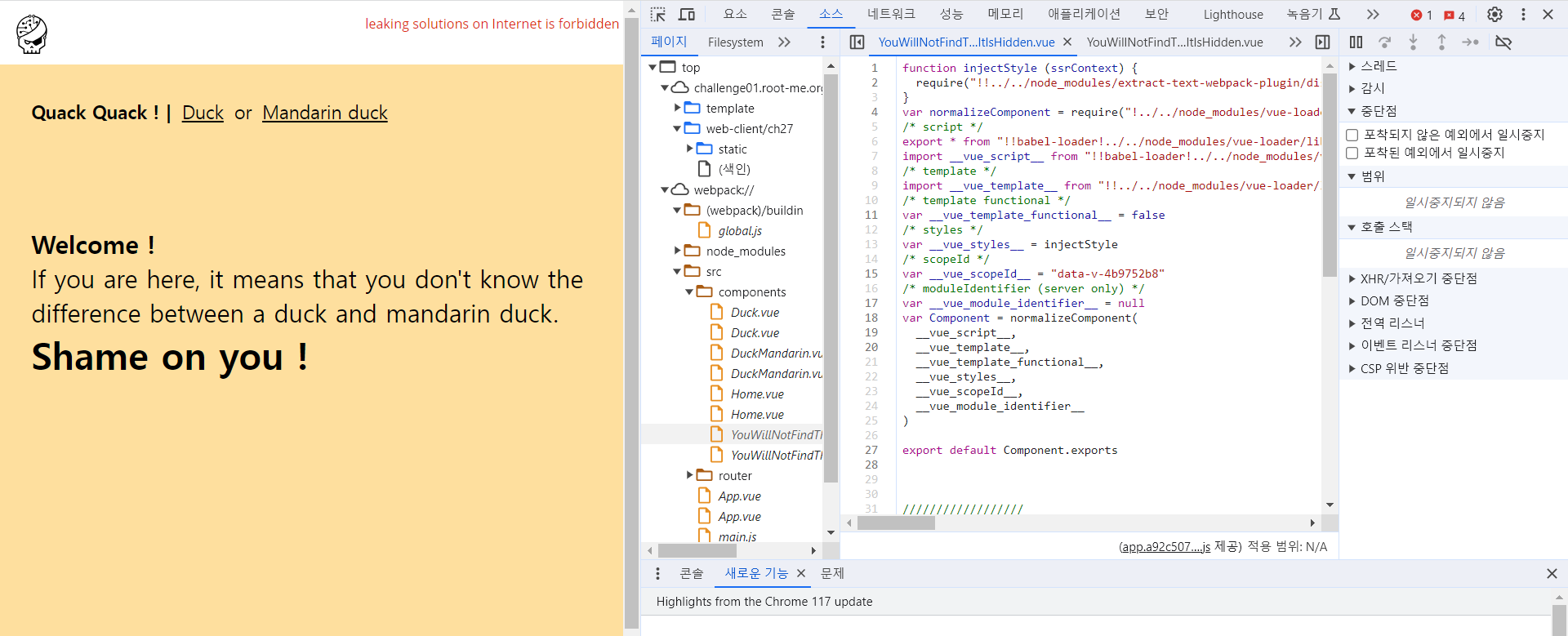 구글링 해보니 This a nomal duck! 이라는 문구 대신 webpack 파일이 있다고 하는데