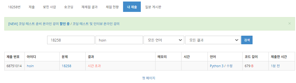 시간 초과 오류 발생해서 deque를 사용하 코드를 수정했다.